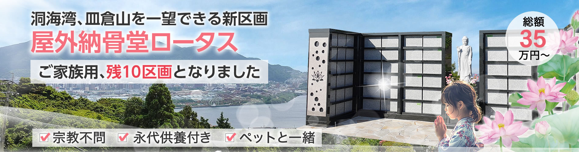 様々なご要望や、将来のお悩みを解決する、新しい時代の新区画が誕生しました。北九州随一の景色と好環境で気持ちよいお参りが出来ます。