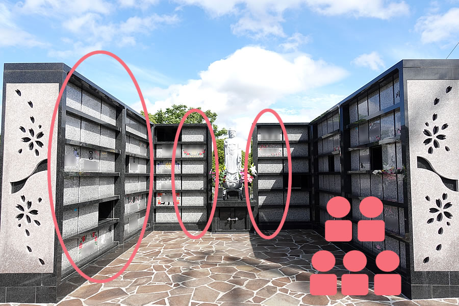 1区画5名様までご納骨が可能です。第1期、第2期は、オープン後、数ヶ月で完売しました。とても人気がある区画です。お早めにご検討ください。